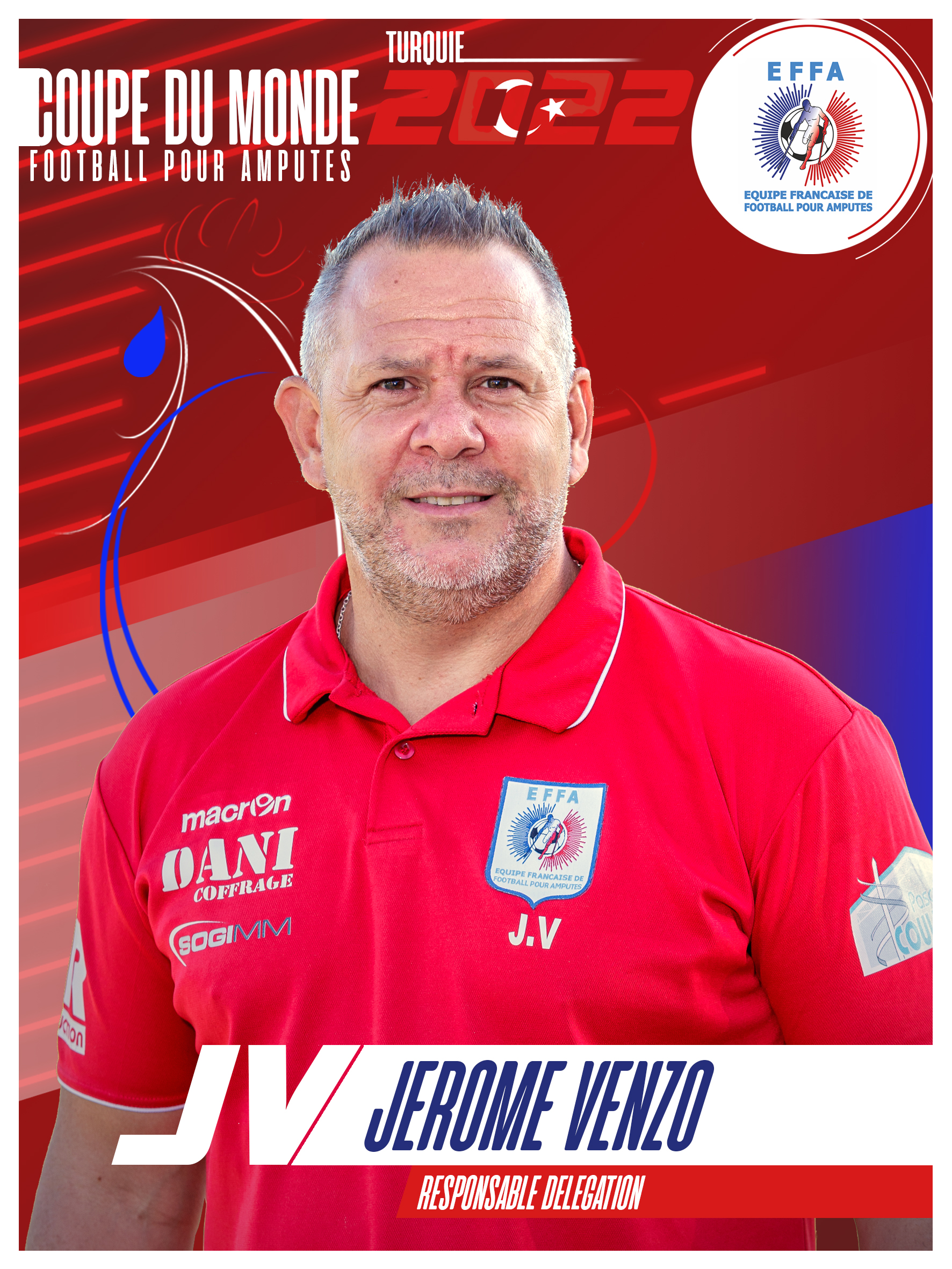 Nous sommes maintenant à une dizaine de jours du début de la Coupe du Monde de football pour amputés qui aura lieu du 30 septembre au 9 octobre à Istanbul en Turquie. Cette année, la France affrontera la Turquie lors du match d’ouverture de la compétition. Pour l’occasion, Talentéo, partenaire de l’équipe française de football pour amputés (EFFA), a pu s’entretenir avec Jérôme Venzo, Manager sportif de l’équipe !