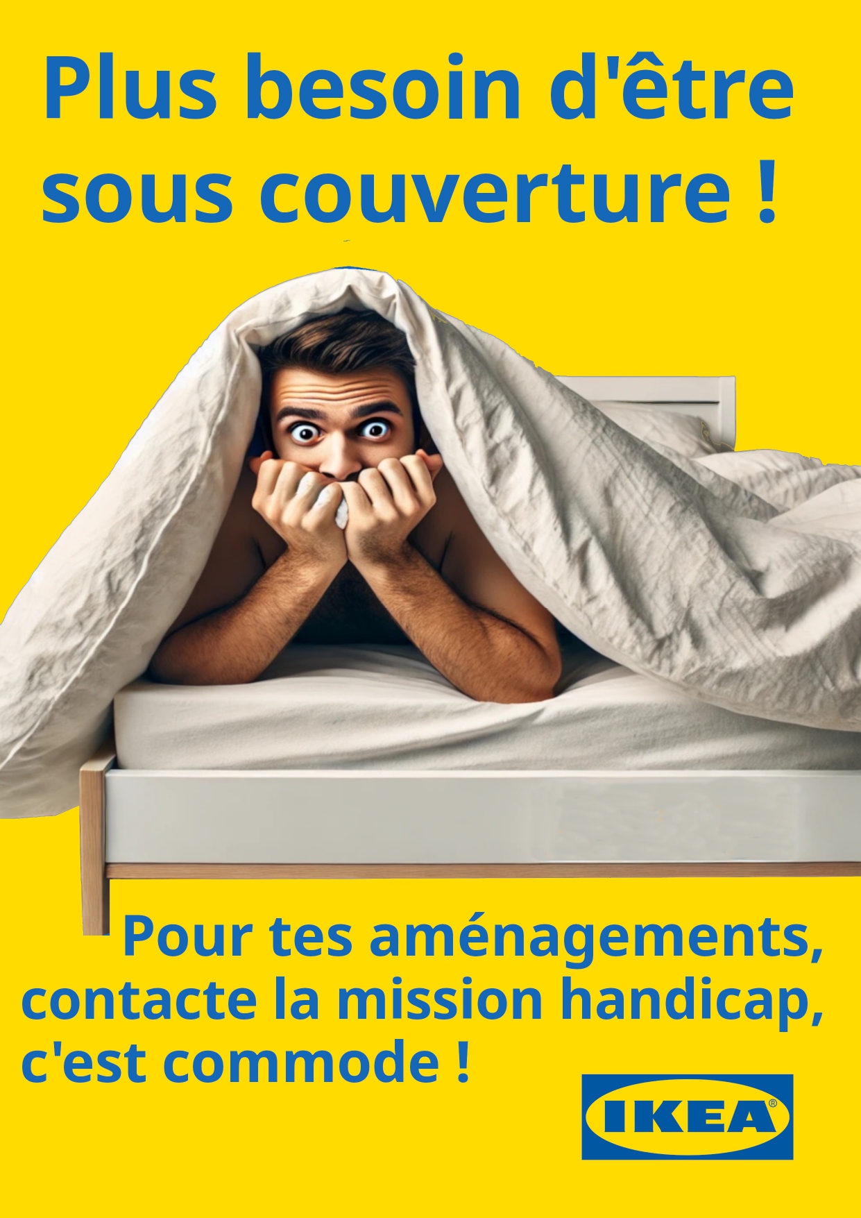 Les étudiants d’Epitech, ESGCI, ESPTA, LISAA et PPA Business School devaient répondre à ce brief : « Encourager les collaborateurs d’IKEA France en difficulté de santé et/ou en situation de handicap à contacter la Mission handicap pour se faire accompagner ». Cette campagne de communication print s’adresse aux collaborateurs d’IKEA France.