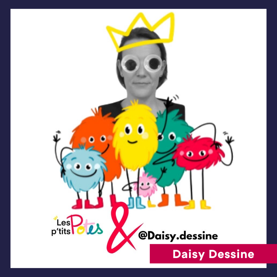 Daisy Dessine : Illustratrice et infirmière. Elle combine ses compétences et connaissances pour sensibiliser à la tolérance et au respect des différences et du handicap sur son compte Instagram. Daisy met aussi à disposition ses outils et interventions spécialement conçus pour les enfants sur son site lesptitspotes. Elle a été également lauréate « graphique » des Talentéo Awards 2023.