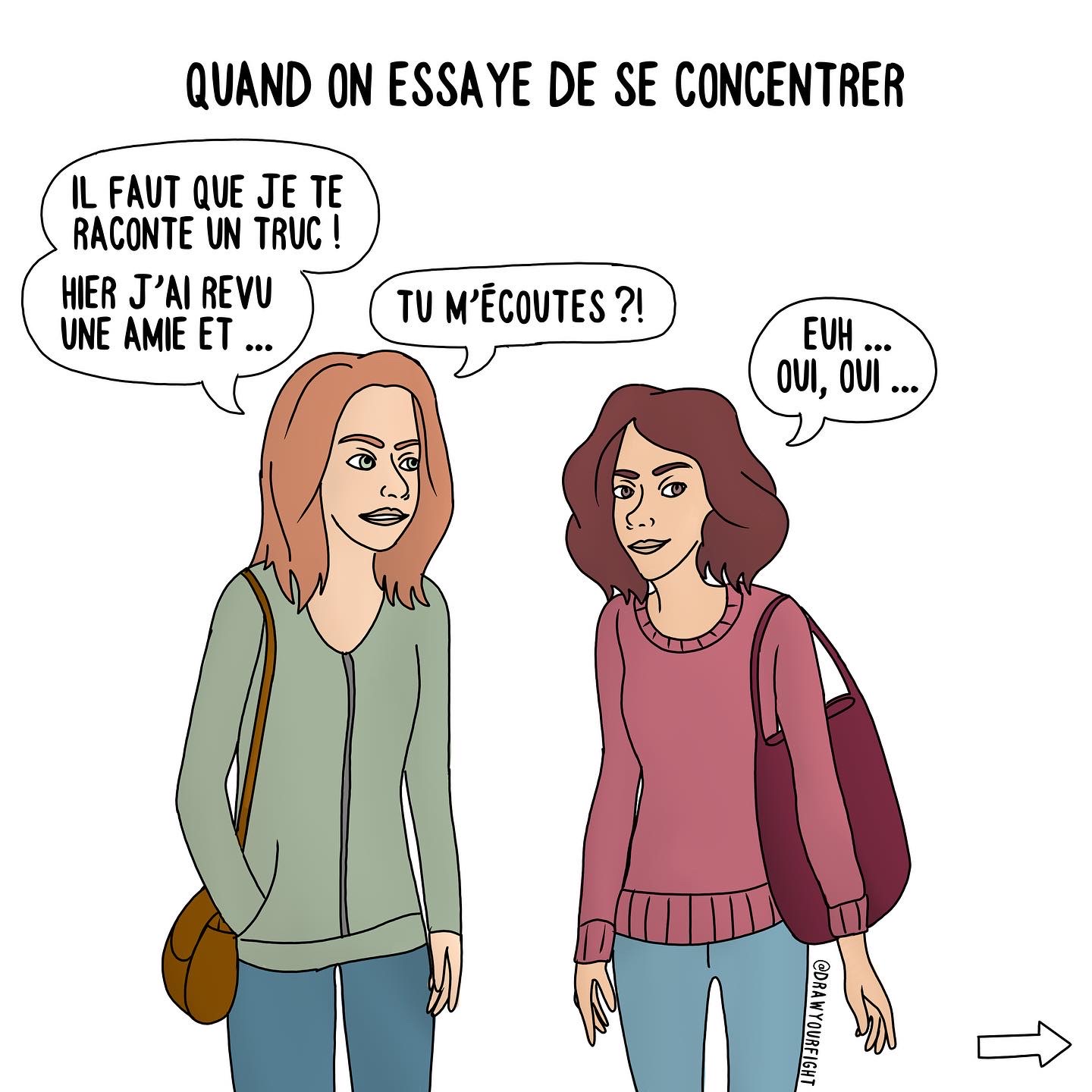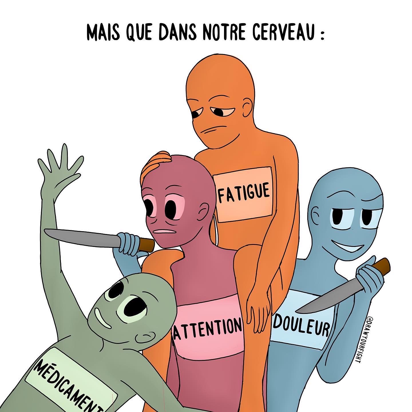 A l’heure actuelle, 3 à 4 illustrations sont publiées chaque semaine sur Instagram. Elles sont régulièrement accompagnées de témoignages sur le handicap et/ou la maladie chronique. Chaque jour, vous pouvez retrouver aussi des petits quiz sur des maladies parfois très méconnues.