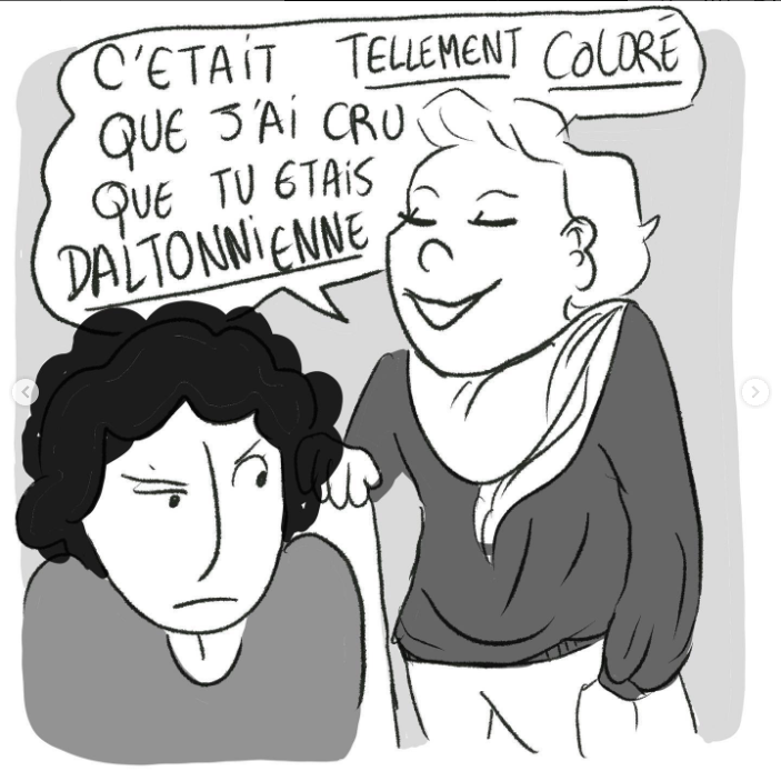 Je m’appelle Athénaïs, j’ai 30 ans. J’ai fait des études d’art et je suis entre autres dyslexique, dysorthographique et dyscalculique. Je raconte des scènes du quotidien sur mon compte Instagram depuis maintenant 3 ans.